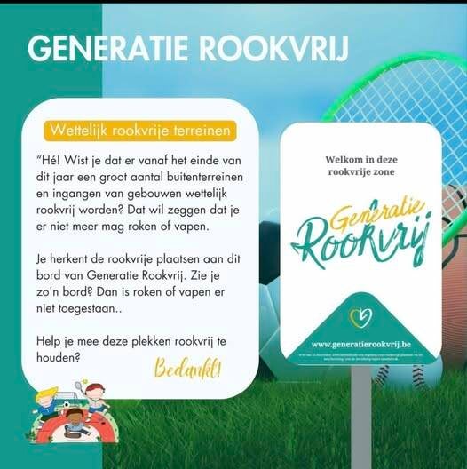 Helpen jullie mee onze terreinen rookvrij te houden?Wij danken jullie alvast voor jullie samenwerking!